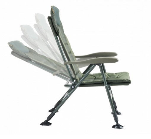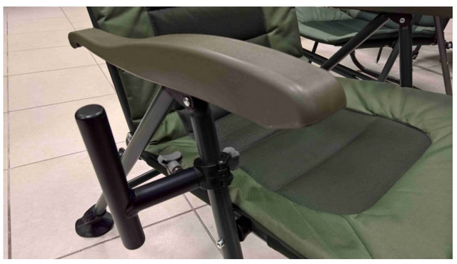 Розкішне крісло зі спинкою анатомічної форми і м'якою неопренової подушкою нового кольору матраца. Передні телескопічні ніжки доповнені широкими поворотними ніжками, що запобігають опускання. Конструкція дуже стійка і міцна (вантажопідйомність 160 кг), але в той же час дуже легка. Крісло пропонує унікальну систему нахилу спинки при піднятті підлокітників.