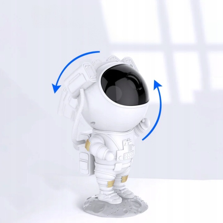 завдяки голові космонавта, що обертається, можна повернути проектор так, щоб він висвітлив кожну стіну і стелю навколо вас;